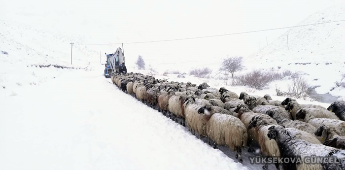 Yüksekova ilçesine bağlı Esendere beldesinde kapanan köy yolunda mahsur kalan küçükbaş hayvanlar belediye ekipleri tarafından kurtarıldı.