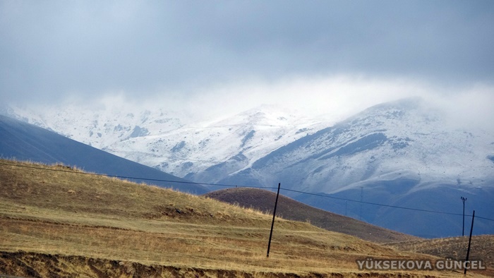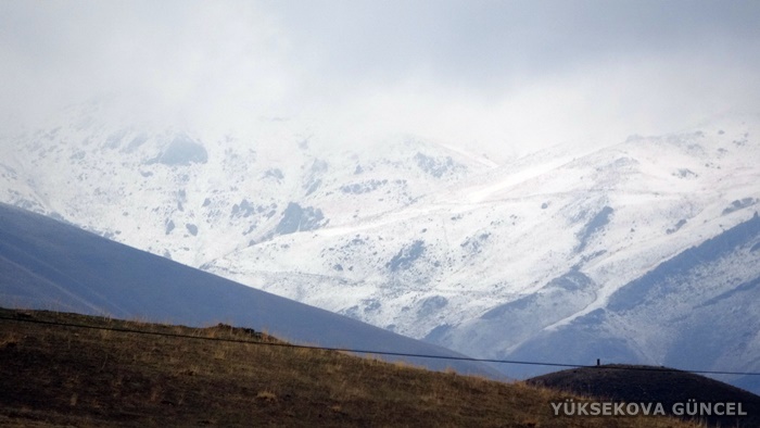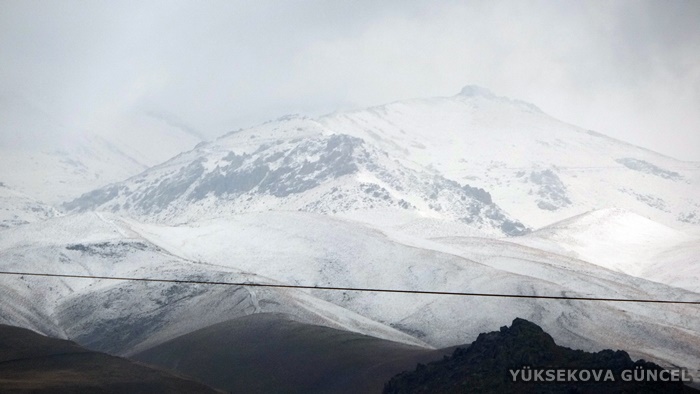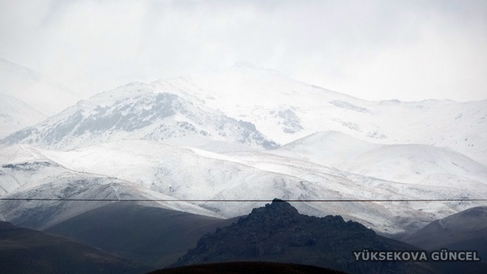 Yüksekova ilçesinde, İran sınırında bulunan dağlar, sezonun ilk karıyla birlikte beyaza büründü.