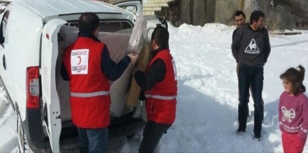 Kızılay Derneği Hakkari Şubesi Başkanı Recep Bozkurt, 22 Aralık 2017 tarihinde Yüksekova ilçesine bağlı Yukarı Güveç köyünde evi tamamen yanan 12 nüfuslu Geylani ailesine, Kızılay Genel Merkezinden gönderilen malzemeleri olumsuz hava şartlarına rağmen teslim ettiklerini söyledi.