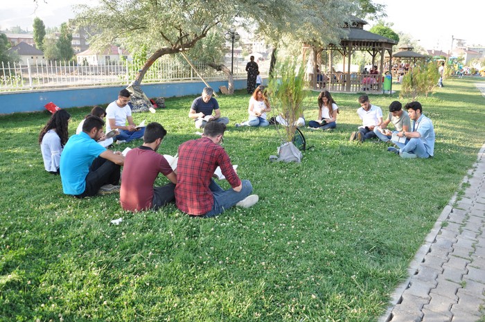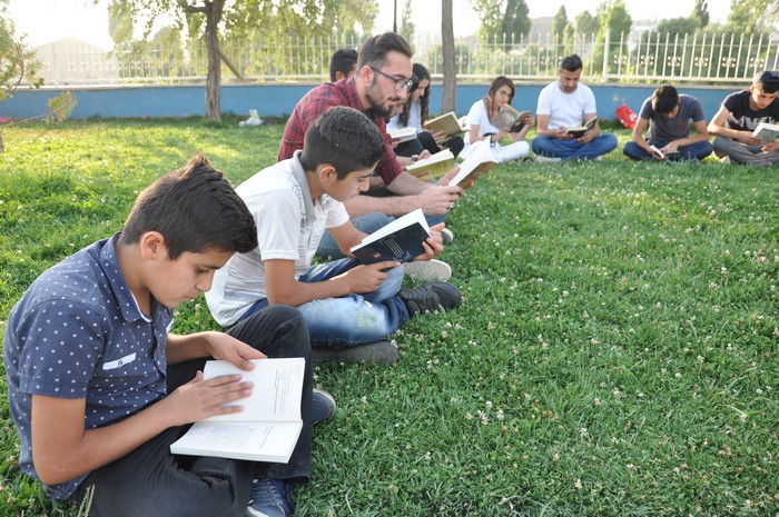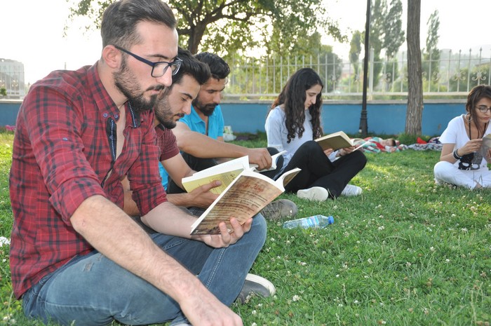 Hakkari'nin Yüksekova ilçesinde üniversiteli öğrencilerden oluşan bir grup genç, parkta vatandaşlarla birlikte ‘’kitap okuma vakti ve farkındalık yaratma’’ adı altında kampanya başlattılar.
