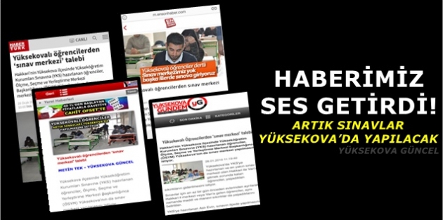 Her sene sınavlar için dışarıya giden birlerce öğrenci, 28 Ocak 2019 tarihli ‘‘Yüksekovalı Öğrencilerden Sınav Merkezi Talebi’’ başlıklı haberimizden sonra, Yüksekova kaymakamlığı ve Milli Eğitim Müdürlüğün girişimleri sonucu hayati önem taşıyan sınavların bundan sonra Yüksekova’da yapılacağını duyurdular.