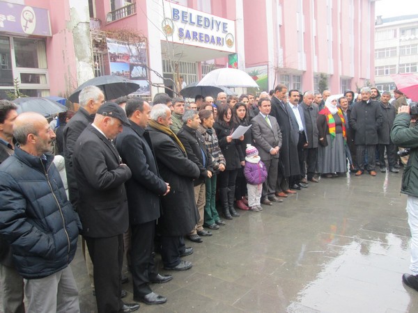 Yağan yağmur altında basın açıklamasını okuyan HDP İlçe Başkanı İmadettin Derin Halepçe Katliamı'nın Hiroşima'dan sonra insanlığa karşı yapılan en büyük katlım olduğunu belirterek, “Dünyanın neresinde olursa olsun insanlığa karşı yapılan bir katliamdır. Yine bu günde küreselleşen ülkeler orta doğuya yeniden yön vermek istedikleri için IŞİD gibi barbar vahşi bir çeteyi ortaya çıkarmışlardır. Bugün bu IŞİD vahşi çetesi de, İslamiyet maskesi altında başta Rojava’da ve ırakta vahşice katliamlar yapmaktadır. Bu tür katliamları kınıyoruz” dedi.