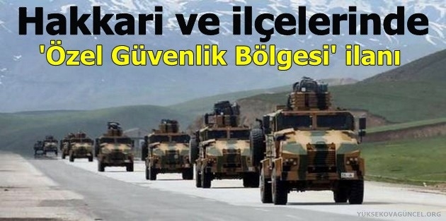 Hakkari Valiliği merkez ve ilçelerinde özel güvenlik bölgelerinin ilan edildiğini duyurdu.