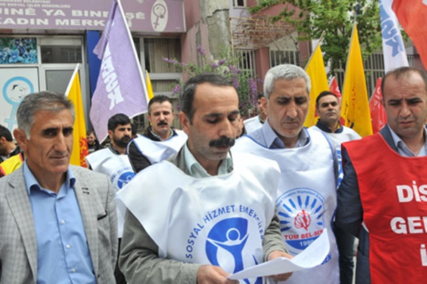 HAKKARİ – Hakkari’de 1 Mayıs Kamu Emekçileri Sendikası (KESK) Hakkari Şubeler Platformu öncülüğünde belediye önünde düzenlenen basın açıklaması ile kutlandı.