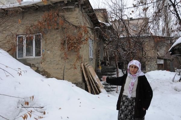 Gazi Mahallesi'nde oturan ve 4 yıl önce eşini kaybeden Piroze Çiftçi kızıyla birlikte kaldığı toprak evde zor günler geçiriyor. Daha önce belediye tarafından evin kapı ve pencereleri yenilenirken, evin damı da geçici olarak brandayla kapatıldı.