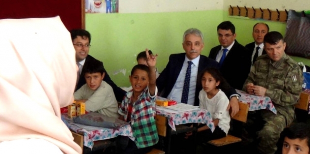 Köyün içerisinde ve çevresinde alınan güvenlik önlemleri altında köy okuluna gelen Vali Toprak ve beraberindekiler, okul müdürü ve öğretmenler tarafından karşılandı. Vali Toprak ve beraberindekiler, daha sonra sınıfları gezerek öğrencilerle aynı sıralarda oturarak ileride ne olmak istediklerini sordular. Öğrencilerin en çok polis olmak istediklerini söylemeleri, Emniyet Müdürü Dilberoğlu'nu sevindirdi.