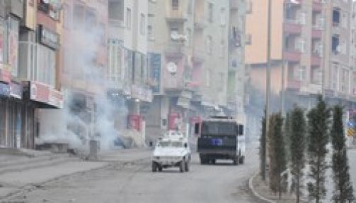 Polisin gaz bombaları ve tazyikli su ile yaptığı müdahaleye gençler taşlarla karşılık verdi. Mahalledeki olaylar sürüyor. / Diha
