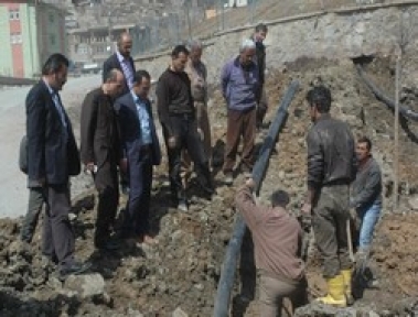 Bugün başlayan kanal kazma ve boru döşeme çalışmalarını yerinde inceleyen Belediye Başkan Yardımcısı Metin Kazandıoğlu ve BDP İl Başkanı Rahmi Kurt ve beraberindeki partililer çalımaları yerinde izleyerek hakkında bilgi aldılar.