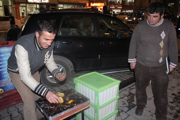 Hakkari’de midyenin ilk defa piyasada satılmaya başlanması ilginç görüntülere neden oldu.