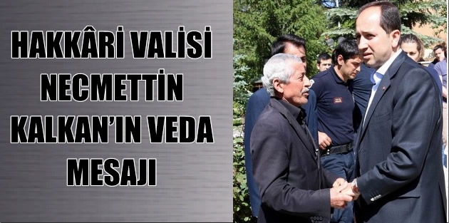 Valilik web sitesinde veda mesajı yayınlayan Vali Necmettin Kalkan, 28 Ağustos 2013 tarihinden itibaren Hakkâri Valisi olarak göreve başladığını hatırlatarak, “Güzel ülkemin serhat şehrine hizmet etmenin gurur ve şerefini taşıyor, güzel ve kısa sayılacak süre içerisinde vatandaşlarımızın huzur ve mutluluğu için yapılması gerekenleri yapmış olmanın vicdani huzuru ile ayrılıyorum.