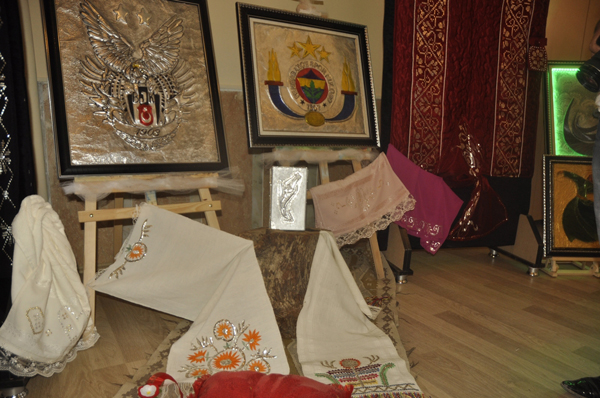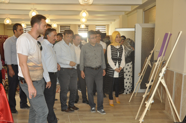 Şemdinli Halk Eğitim Merkezi'nde açılan sergide eğitim gören kursiyerler, el emeklerini sergiledi. 3 aylık bir çalışma sonucu tel kırma, yağlı boya, kara kalem, ebru, alüminyum, tel kırma, filografi ve keçi süsleme ürünlerinden yapılan eserler sergiledi.