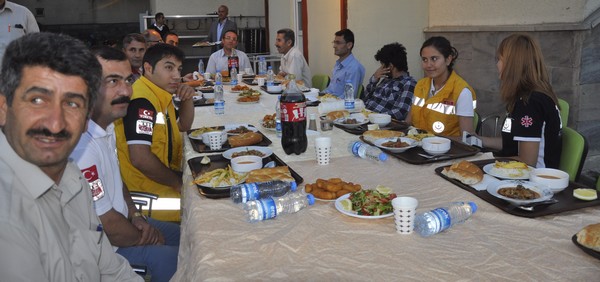 Yüksekova Devlet Hastanesi bahçesinde düzenlenen iftar yemeğine Hakkari Kamu Hastaneleri Birliği Genel Sekreteri Dr. Hakan Türk, Sağlık İl müdürüTülay Mısraklı,