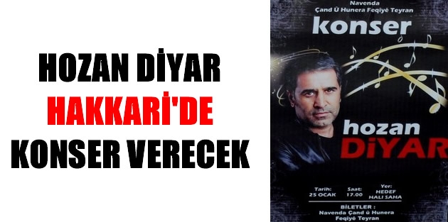 Kürt sanatçı Hozan Diyar, Navenda Çand û Hûnera Feqiyê Teyran Kültür Merkezi tarafından düzenlenen etkinlikler kapsamında Hakkari'de konser verecek.