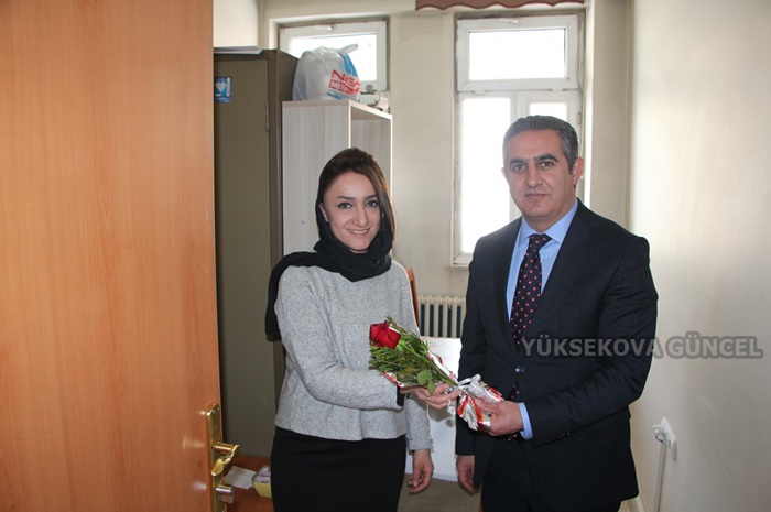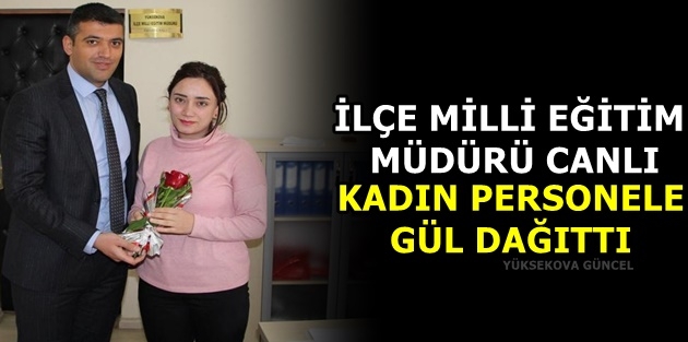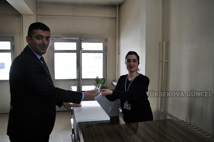 Yüksekova İlçe Milli Eğitim Müdürü Servet Canlı, milli eğitimde görevli kadın personele gül dağıtarak 8 Mart Kadınlar Günü'nü kutladı.