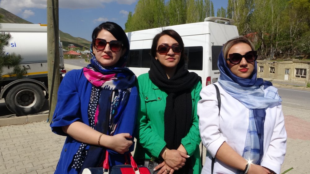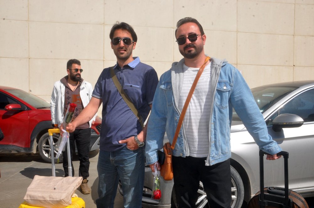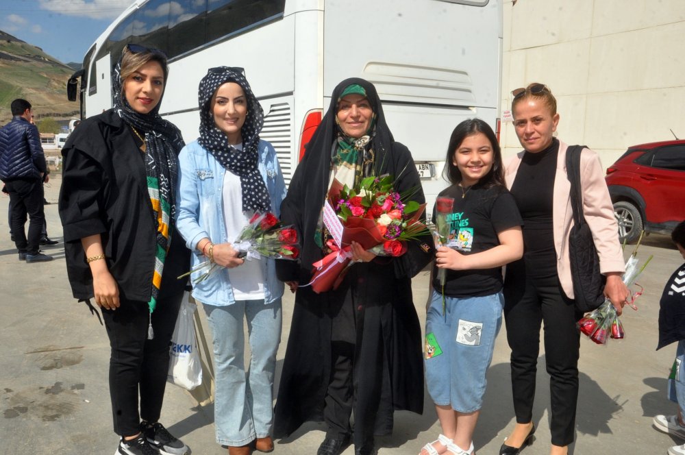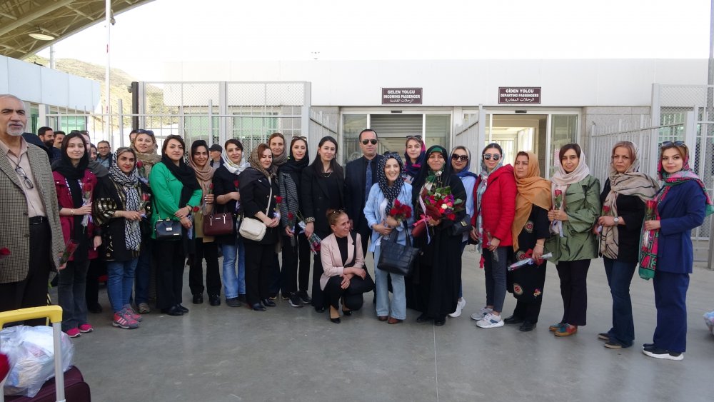 3 gün boyunca bölgede misafir edilecek İranlılar, kapıda davullu-zurnalı ve güllerle karşılandı.