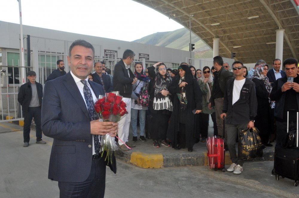 Hakkari ve ilçelerinde 3 gün boyunca ziyaret gerçekleştirecek 100'e yakın İranlı, Esendere Sınır Kapısı’nda davullu-zurnalı ve güllerle karşılandı.
