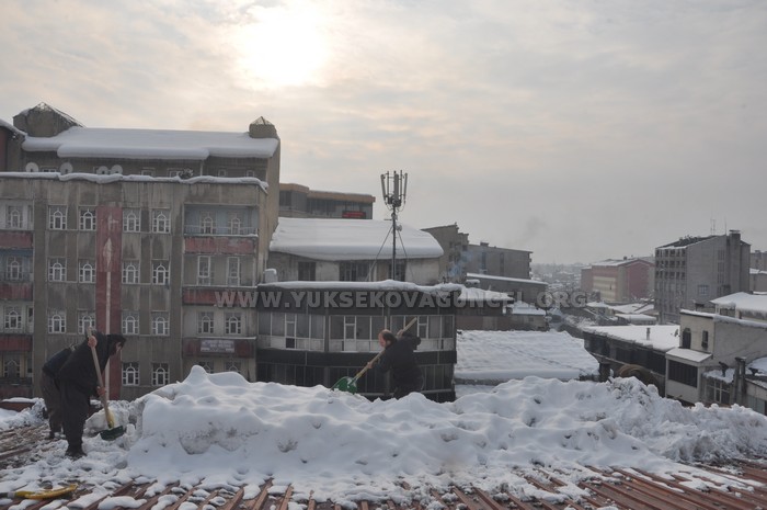 Yüksekova ilçesinde etkili olan kar yağışının ardından çatılarda biriken karlar, birçok vatandaşın ekmek kapısı oldu.