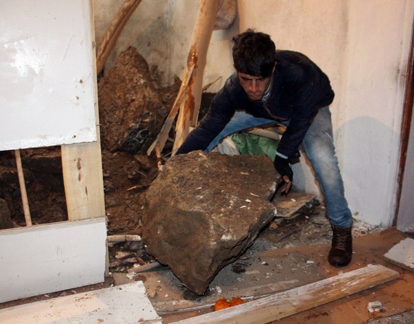 Akşam saatlerinde etkili olan kar yağışı nedeniyle Yeni Mahalle’de bir istinat duvarı, 6 nüfuslu Bor ailesinin kaldığı tek katlı toprak evin üzerine yıkıldı. Ev kullanılamaz hale gelirken, gürültüyle birlikte uyanan Bor ailesi kaçarak canlarını zor kurtardı. Büyük kayaların çocuğunun kullandığı yastığın üzerine düştüğünü ve ölümden döndüğünü söyleyen 5 çocuk annesi Akise Bor, hayatlarını zor kurtardıklarını söyledi.