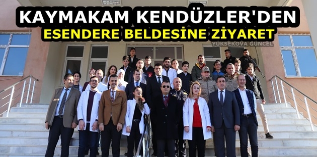 Yüksekova Kaymakamı ve Belediye Başkan Vekili Ramazan Kendüzler, beraberindeki İlçe Emniyet Müdürü Haluk Baş, Yüksekova Belediye Başkan Vekili Yardımcısı Bayram Özcan, İlçe Milli Eğitim Müdürü Servet Canlı ve Esendere Belde Belediye personeliyle İran sınırındaki Esendere Beldesi Esendere Çok Programlı Anadolu Lisesini ziyaret etti.