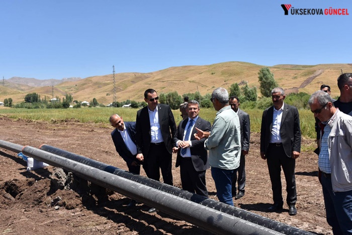Yüksekova Kaymakamı Çimşit, ilçe merkezinin yakın köylerinde başlayan kazı ve boru döşeme çalışmalarını yerinde inceledi.