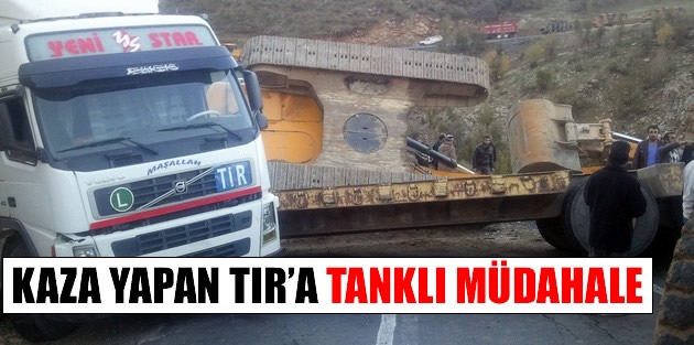 Hakkari’nin Şemdinli ilçesinde kaza yapan bir TIR, askerlerin tankla müdahalesi ile yoldan kaldırıldı.