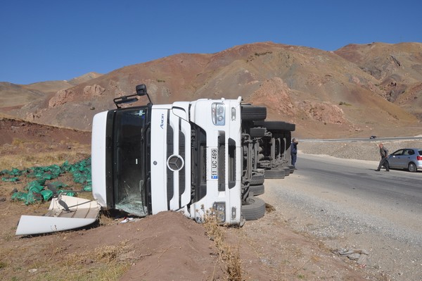 YÜKSEKOVA-Edinilen bilgiye göre, Van istikametinden gelmekte 11 UC 489 plakalı kömür yüklü kamyon, Boybey köyü mevkiinde virajı alamayarak devrildi. 20 ton kömürü taşıyan kamyonun sürücüsü ise yoldan geçen vatandaşlar tarafından araçtan çıkarılarak Yüksekova Devlet Hastanesine kaldırıldı.