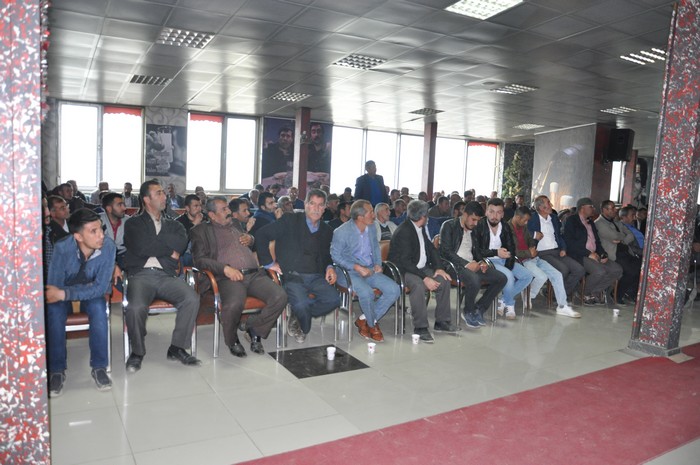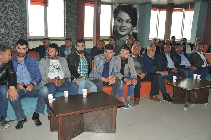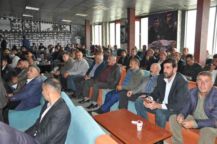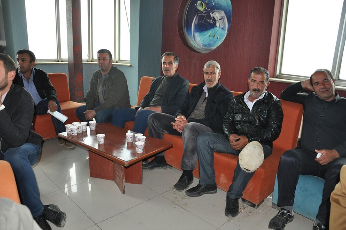 Hakkari'nin Yüksekova ilçesindeki S.S. 16 No'lu Motorlu Taşıyıcılar Kooperatifi Başkanı Behçet Özdemir, sorunlara çözüm bulmak için şoförlerle bir araya geldi.