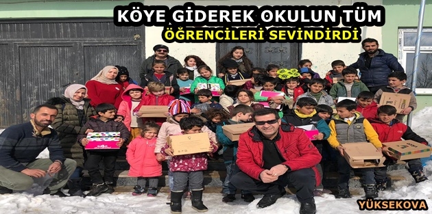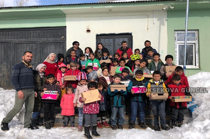 Yüksekova ilçesine 25 kilometre uzaklıkta bulunan Akocak köyüne giden Vahap Canan adlı vatandaş, İstanbul'dan gelen ayakkabıları köydeki tüm öğrencilere dağıttı.