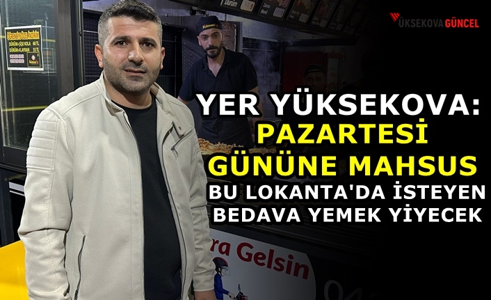 Yüksekova ilçesinin Cengiz Topel Caddesi üzerindeki Ziraat Bankasının karşısında bulunan Kümeschi isimli işletme yarın (PAZARTESİ) gün boyu Yüksekova halkına ücret almayarak dürüm servis edeceğini duyurdu.
