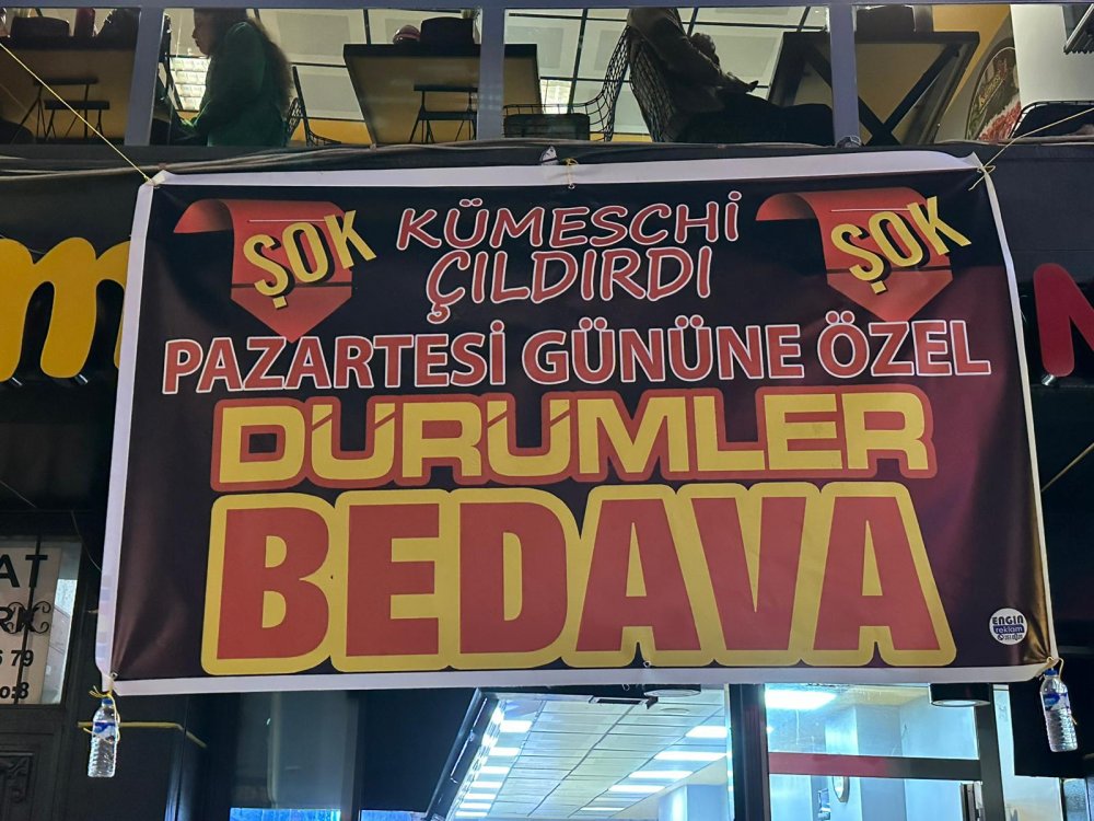 Hakkari’nin Yüksekova ilçesinin Cengiz Topel Caddesi üzerindeki Ziraat Bankasının karşısında bulunan Kümeschi isimli işletme yarın (PAZARTESİ) gün boyu Yüksekova halkına ücret almayarak dürüm servis edeceğini duyurdu.