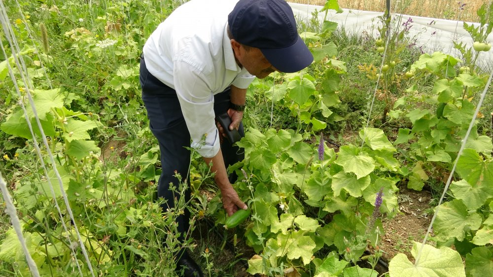 İran sınırında bulunan Esendere beldesinde yaşayan Mecit Büyüksu, kendi arsasında kurduğu serada yetiştirdiği çok sayıda sebzeyi ihtiyacı olan vatandaşlara bedava dağıtıyor.