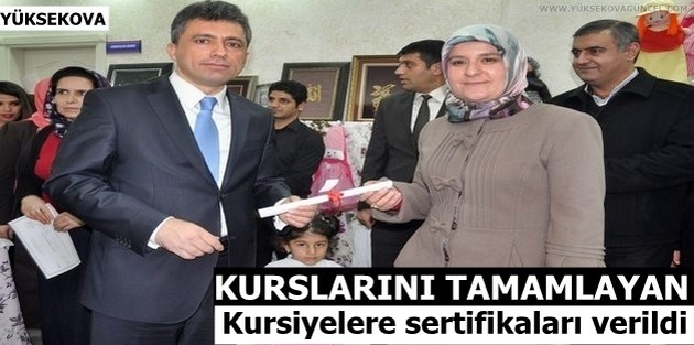 YÜKSEKOVA - Hakkari'nin Yüksekova ilçesinde Kaymakamlığa bağlı olarak kurs veren Aile Eğitim Merkezi'nde, kurslarını başarılı bir şekilde tamamlayan kursiyerlere, eğitim gördükleri dallara ait sertifikalar dağıtıldı. Giyim teknolojisi, Moda tasarım ve El Sanatları dallarında eğitim gören 80 öğrenci, sertifikalarına kavuşma sevinci yaşadı.
