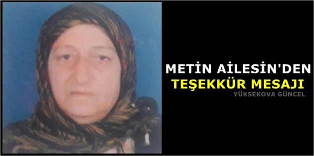 Yüksekova Ticaret Ve Sanayi Odasının (YÜTSO) meclis başkanı İzzettin Metin Annesi'nin Vefatı ile ilgili teşekkür mesajı yayınladı.