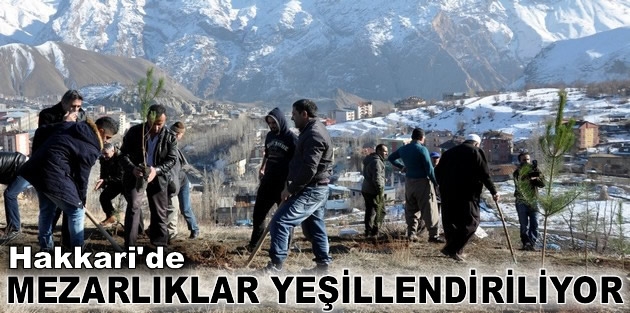 Yeşillendirme kapsamında Gazi ve Karşıyaka mahallelerindeki mezarlıklara dikilmek üzere mahalle sakinlerine 350 adet çam ve sedir fidanı dağıtıldı. Mahalle sakinleri, dağıtılan fidanları Orman İşletme İl Müdürlüğü’nde görevli Ağaçlandırma ve Toprak Muhafaza Şefi Abdulmenav Demir nezaretinde usulüne uygun bir şekilde diktiler. Orman İşletme Genel Müdürlüğü tarafından “Ağaçlandırma Eylem Planı” kapsamında ildeki mezarlık, okul ve cami bahçelerini yeşillendirme çalışmalarına başladıklarını ifade eden Hakkari Orman İşletme Müdürü Yüksel Özcan, il merkezi başta olmak üzere 12 köyde toplam 10 bin fidan dikeceklerini söyledi. Mezarlıkların yeşillendirilmesi ve korunması için ellerinden geleni yapacaklarını belirten Özcan, yeşillendirerek etrafını tel örgülerle kapatarak koruma altına aldıkları mezarlıklara vatandaşların da sahip çıkması için uyarıcı tabelalar asacaklarını söyledi.