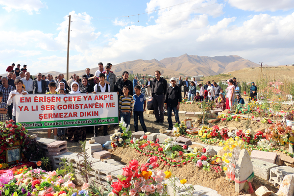 HDP binası önünde bir araya gelen kitle sloganlar eşliğinde Orman Mahallesi’ndeki mezarlığa kadar yürüdü.