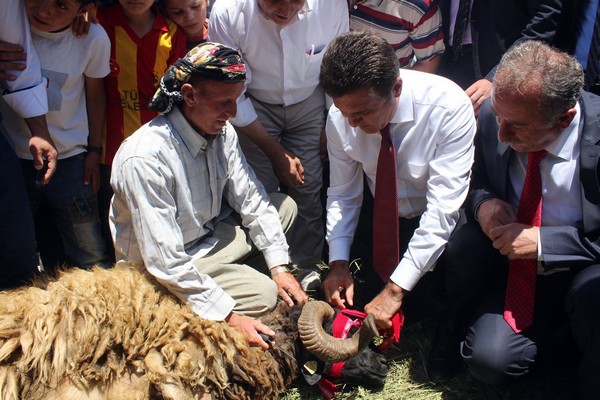 Ziyareti şerefine alanda hazır bekletilen kınalı koçun yanına gelen Mustafa Sarıgül, hayvanın gözlerindeki bezi kaldırarak kesilmesine izin vermedi. Daha sonra Başkan Fatih Keskin’in makamına geçen Sarıgül, burada basın mensuplarına açıklamalarda bulundu.