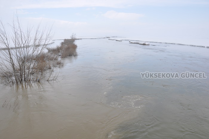 Yüksekova ilçesinde etkili olan sağanak yağış ve karların erimesi nedeniyle Nehil Çayı'nın su seviyesinin yükselmesi köylüleri korkutuyor.