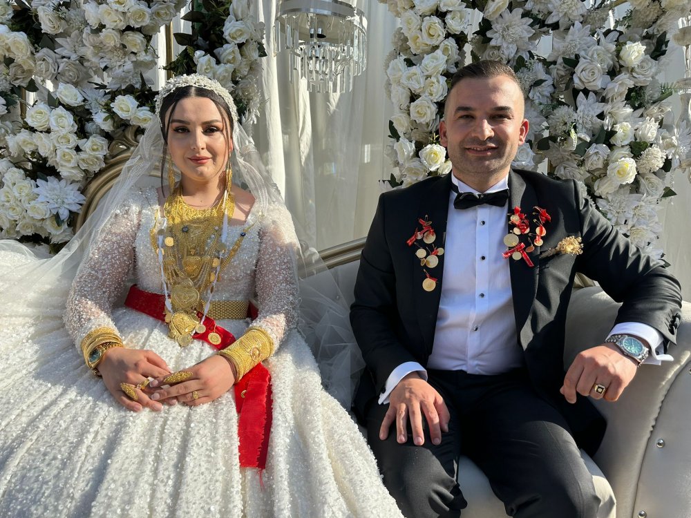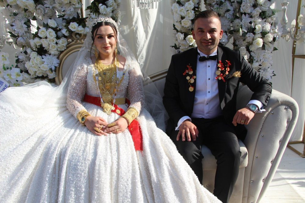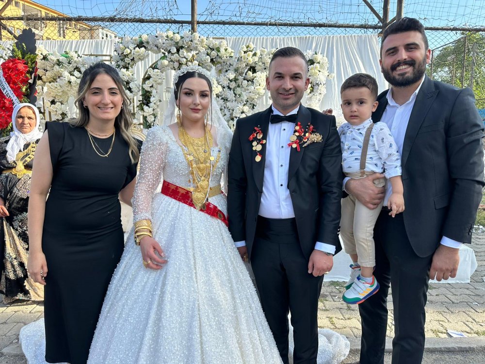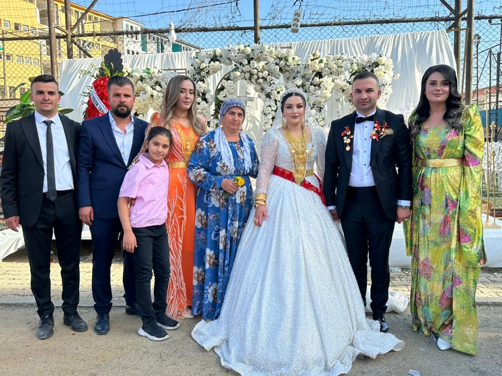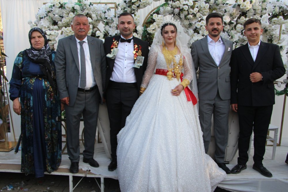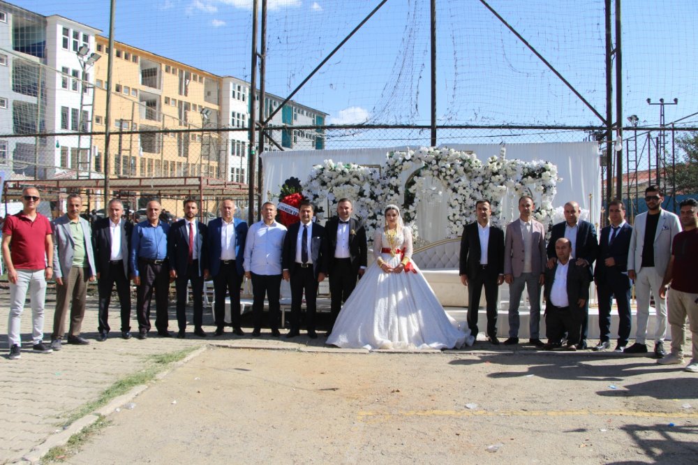 İlçenin İpekyolu caddesi üzerinde bulunan Şemsettin Onay Anadolu Lisesinin bahçesinde yapılan görkemli bir düğünle dünya evine girdiler.