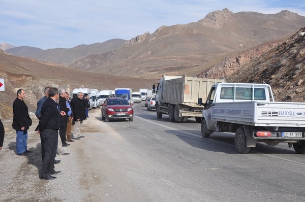 Hakkari Şöförler ve Otomobilciler Odası Başkanı Abdi Arslan, Yüksekova Şöförler ve Otomobilciler Odası Başkanı Yavuz Özcan, Yüksekova Esnaf ve Sanatkar Odası Başkanı İrfan Sarı ve sürücüler, oturma eyleminde bulunmak ve basın açıklaması yapmak üzere Yüksekova-Van karoyolunun 25. kilometresinde bir araya geldi. Çöplük mevki olarak adlandırılan virajlı yolda bir araya gelen kalabalık burada karayolunu trafiğe kapatarak önce basın açıklaması yaptı. Hakkari Şöförler ve Otomobilciler Odası Başkanı Arslan, Yüksekova Şöförler ve Otomobilciler Odası Başkanı Özcan ve Yüksekova Esnaf ve Sanatkar Odası Başkanı Sarı yapıtıkları basın açıklamasında karayolları yetkililerini suçladı.