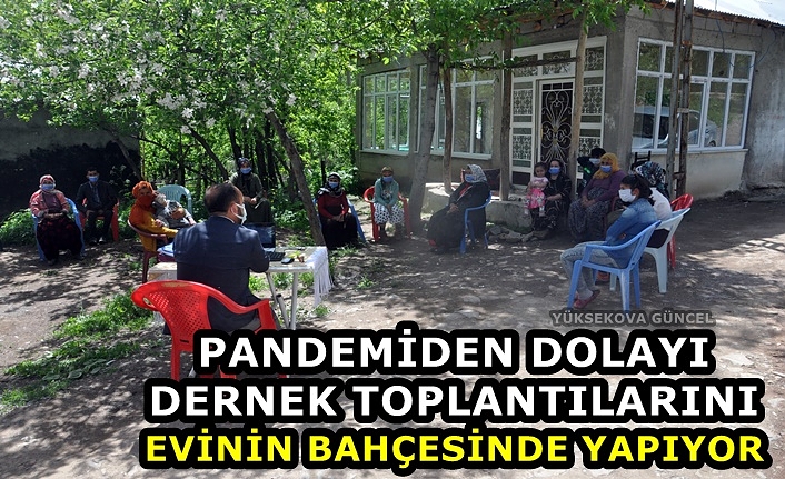 Yüksekova Engelli Bireyler Yardımlaşma ve Dayanışma Derneği Başkanı Mehmet Salih Diler, pandamiden dolayı dernek toplantılarını Büyükçiftlik beldesinde bulunan köyündeki evinin bahçesinde yapıyor.