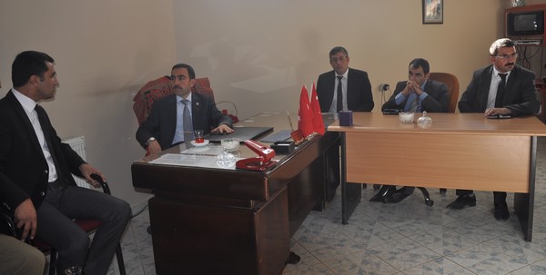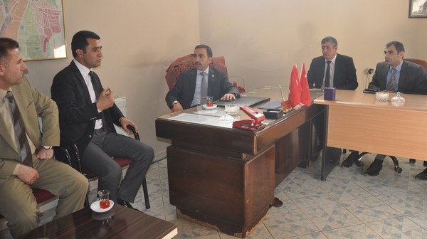 Hazeyi iş merkezinde bulunan muhtarlar Burosunda ilçedeki muhtarları ziyaret eden Rektör Ceylan,  meslek yüksekokulu çalışmaları için destek istedi.