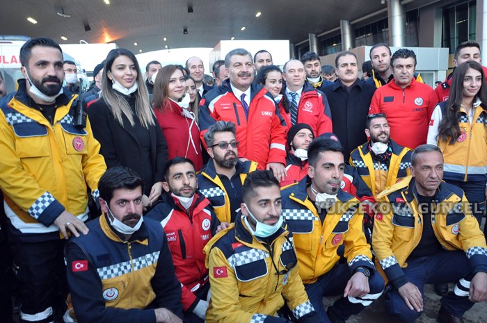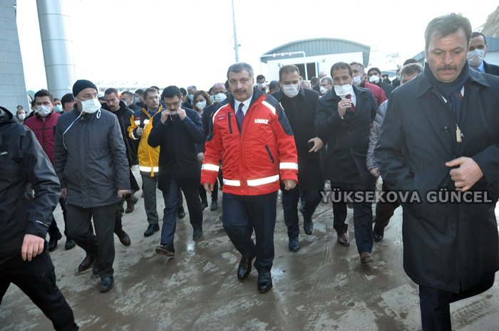 Sağlık Bakanı Fahrettin Koca'yı, Hakkari Valisi İdris Akbıyık, Yüksekova Kaymakamı Osman Doğramacı, İl Emniyet Müdürü Atanur Aydın, Yüksekova Emniyet Müdürü Murat Güneş, Esendere Belde Belediye Başkanı Dırbaz Büyüksu, AK Parti Hakkari İl Başkanı Emrullah Gür, AK Parti Yüksekova İlçe Başkanı Fatih Arslan, Büyükçiftlik Belde Başkanı Rüştü Zeydan karşıladı.