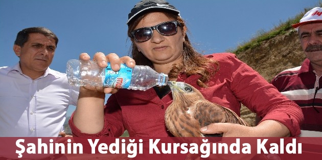 Yapılan incelemede yaraya rastlanmazken, şahinin dilini dışarıya doğru çıkardığını ve boğazının tıkandığını, bu nedenle hareket edemeyip baygınlık geçirdiği belirlendi. Bunun üzerine Belediye Eş Başkan Vekili Fatma Yıldız, makam aracından bir pet su alıp kızıl şahine su verdi. Kana kana su içmeye başlayan şahinin kusmaya çalıştığını gören belediye meclis üyeleri, kuşun sırtına vurup göğsünü sıvazlayarak kusmasını sağladı.