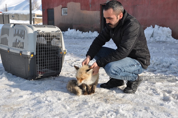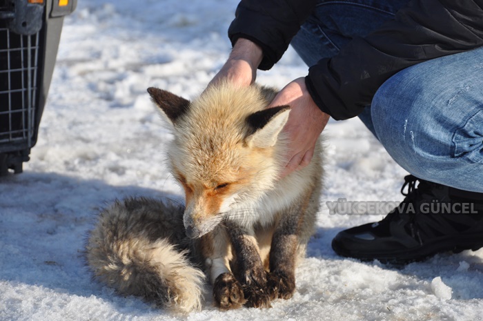 Yüksekova ilçesinde yiyecek bulmak için şehir merkezine inerken köpeklerin saldırısına uğrayan yavru tilki tedavi altına alındı.