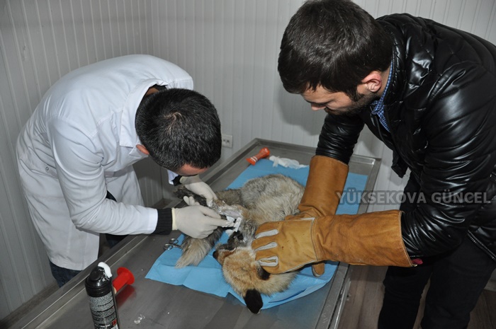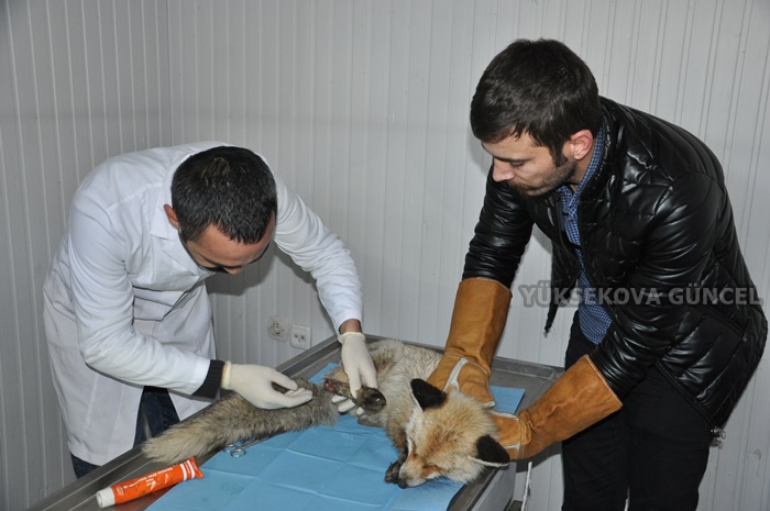 Bu esnada tilkiyi fark eden sokak köpekleri, hemen saldırıya geçti. Köpeklerin sesiyle dışarıya çıkan vatandaşlar tarafından yaralı olarak kurtarılan tilki, Yüksekova Belediyesindeki veteriner hekim Hekim Kaçan'a teslim edildi.