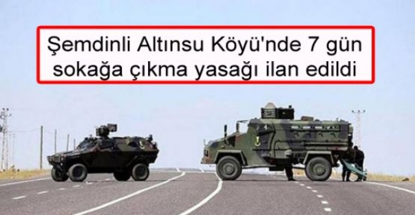 Şemdinli ilçesine bağlı Altınsu Köyü, Dereboyu, Elde Mahalleleri ile İncesu Mezrası'nda 7 gün süre ile saat 22.00-05.00 saatleri arasında sokağa çıkma yasağı ilan edildi.