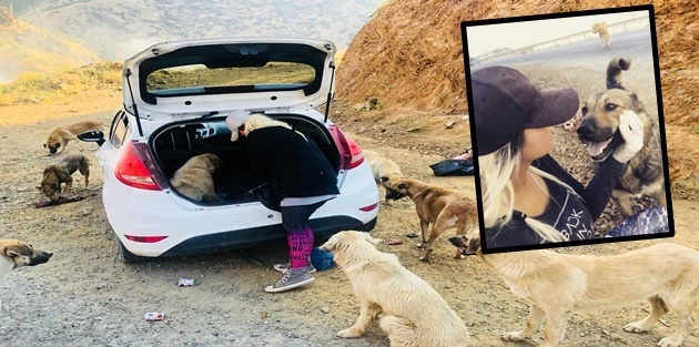 Alanda 100'den fazla köpek olduğunu kaydeden Eda öğretmen, "Akşam vakitlerinde buraya iniyorlar. Hepsini de beslemeye çalışıyorum. Burada bizim halk kasabımız var. Bana her gün et ayırıyor. Ben onları köpeklere götürüyorum. İnternetten mama alıyorum, yavrularıma süt alıyorum. 10 kilometre kadar yol gidiyorum. Ben Şemdinli merkezde yaşıyorum, onlar da Derecik yolu üzerinde. Günde 2 defa gelip gidiyorum" şeklinde konuştu.