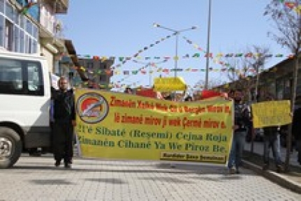 Cumhuriyet Caddesi'nde bulunan BDP ilçe seçim bürosu önüne kadar yürüyen kitle adına konuşan KURDİ-DER Şemdinli Şube Başkanı Hamza Arslan, dillerin önemine vurgu yaparak, asimilasyon, imha ve inkar politikalarından vazgeçilmesi gerektiğini söyledi.