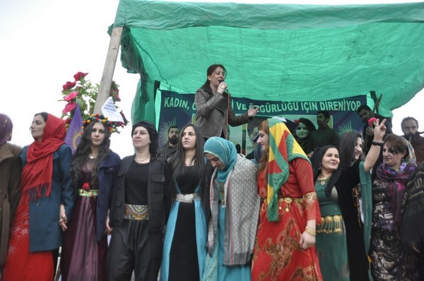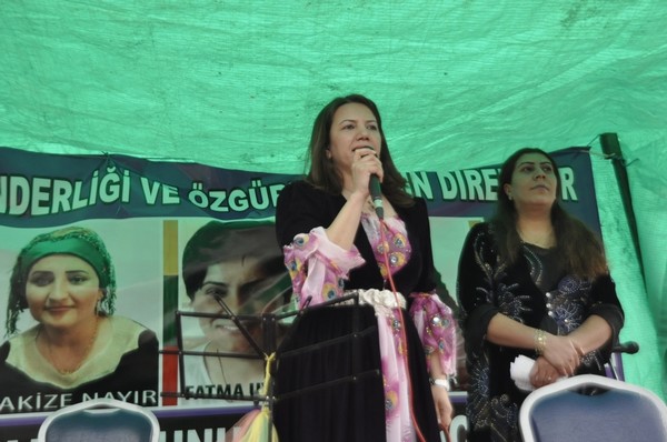 Etkinlikte konuşan HDP Hakkari Milletvekili Selma Irmak, "Bu uğurda mücadele veren tüm arkadaşlarımızın yoldaşıyız ve bu nedenle hiç kimse bizim gözümüzü korkutamaz, gücümüzü sınayamaz, hiç kimse başımızı eğemez ve yükselişimize engel olamaz" dedi.