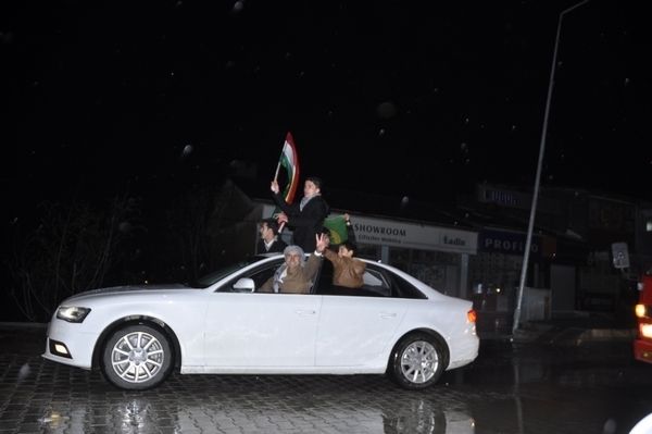 BDP'nin açılan ilk sandıklardan çıkan oylara göre seçimleri açık ara önde götürmesi ardından ilçe merkezinde toplanan binlerce kişi kutlamalara başladı.